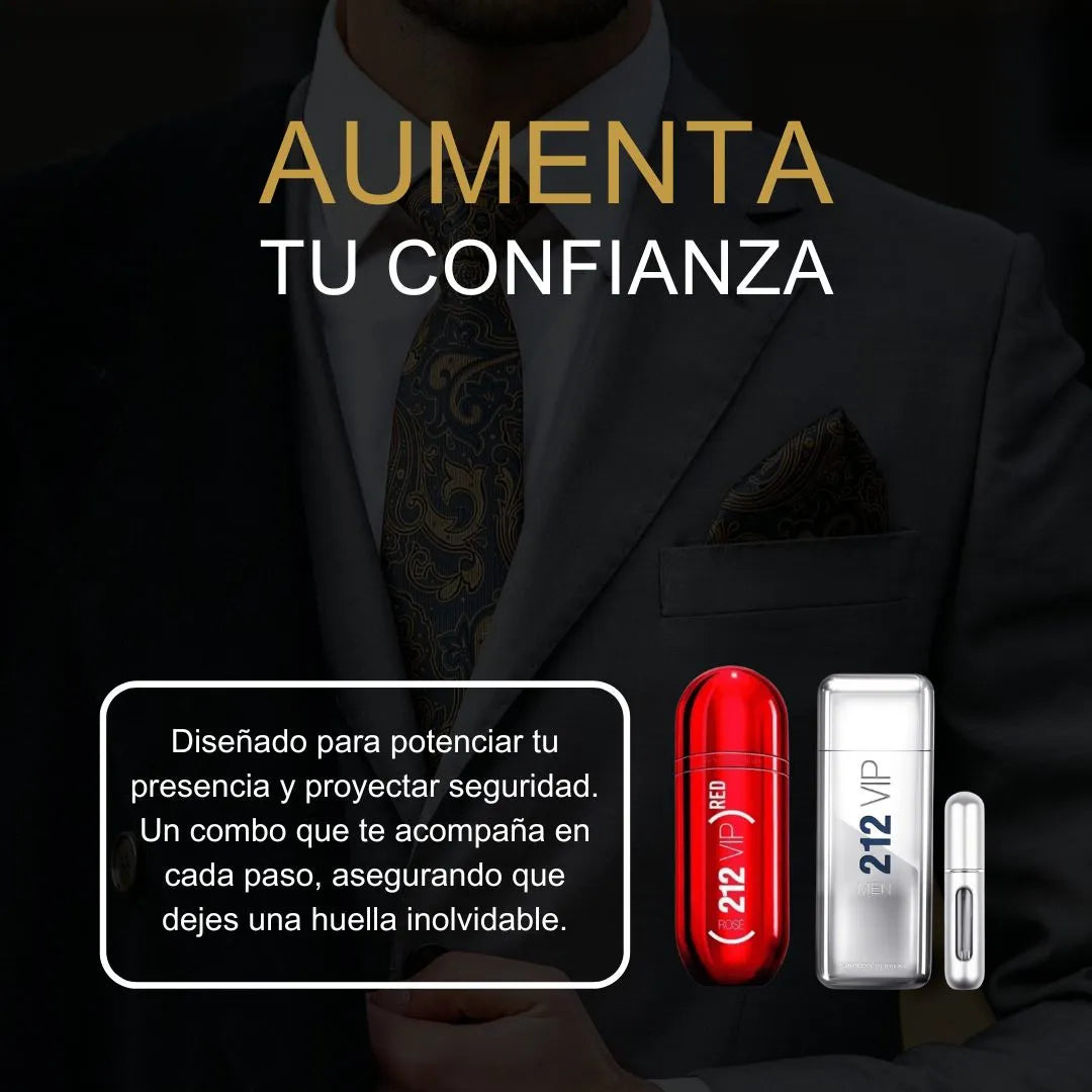 Este combo presenta la frescura y sofisticación de 212 VIP Men, con notas de caviar de lima, menta y vodka helado, junto al toque audaz y seductor de 212 VIP Rosé Red, con licor de tomate, frambuesa y especias. Una pareja de fragancias que destaca por su exclusividad y estilo incomparable.