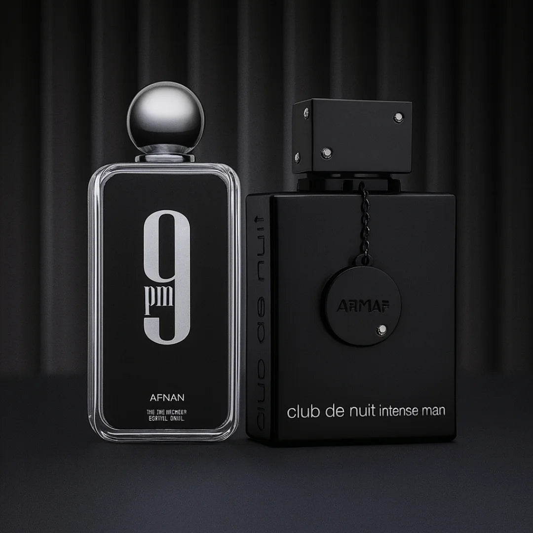 9 PM aporta la dulzura nocturna de la vainilla y la canela ✨, mientras Club de Nuit entrega la fuerza ahumada de los cítricos y el ámbar 🍋🔥. ¡Juntos son pura atracción!