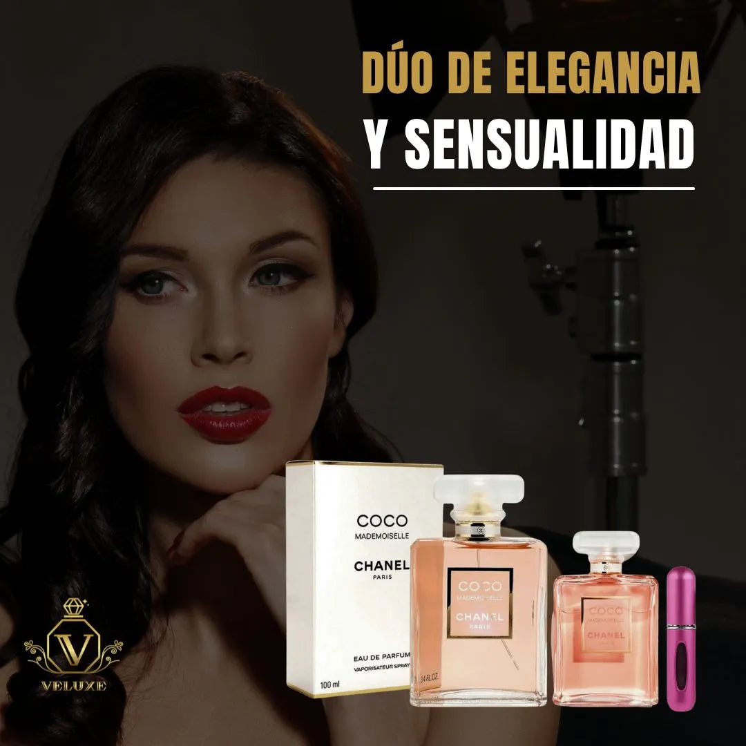 Este conjunto incluye dos frascos de Coco Mademoiselle de 50 ml, una fragancia femenina que combina notas cítricas, florales y amaderadas, ofreciendo un aroma fresco y sofisticado. Se acompaña de un perfumero recargable, permitiéndote llevar tu esencia favorita a cualquier lugar con estilo y comodidad.