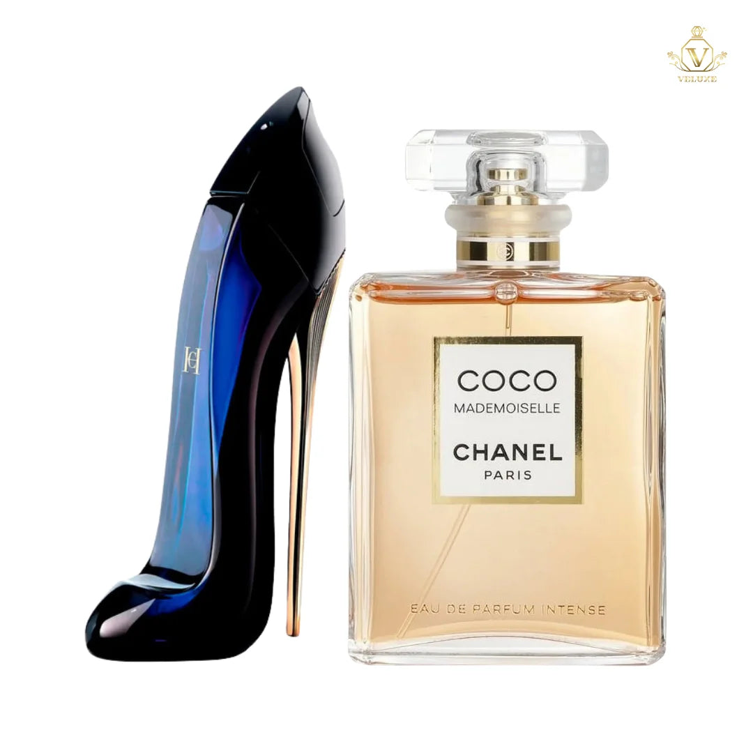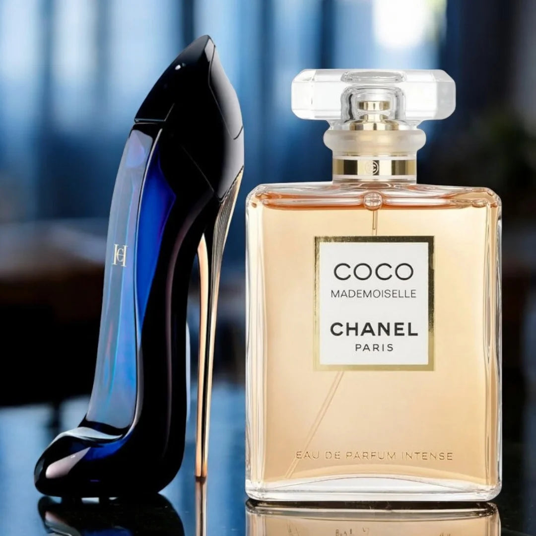 La combinación de Good Girl y Coco Mademoiselle fusiona la intensidad de la almendra y el café con la frescura de la naranja y la bergamota, creando una fragancia que equilibra sensualidad y elegancia.