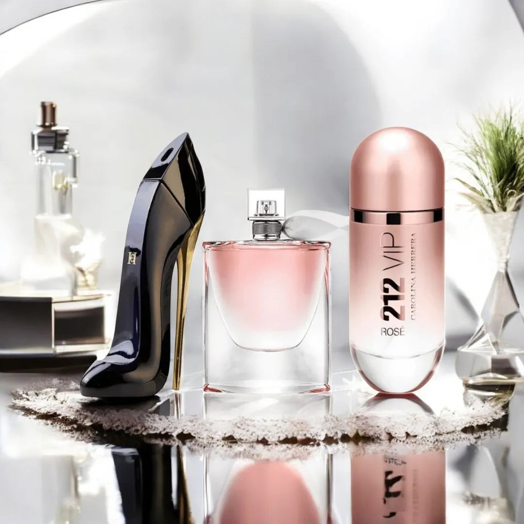 Sumérgete en la sensualidad de Good Girl, la dulzura de La Vie Est Belle y la frescura de 212 VIP Rosé. Este trío de fragancias captura la esencia de la mujer moderna, permitiéndote expresar cada faceta de tu personalidad con elegancia y estilo.