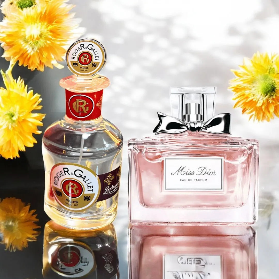 Sumérgete en la frescura vibrante de Jean Marie Farina, que envuelve con su aroma cítrico y energizante. Acompañado por la delicadeza floral de Miss Dior Blooming Bouquet, que ilumina con su esencia suave y femenina. Este dúo es la combinación perfecta para reflejar tu vitalidad y elegancia en cada momento.