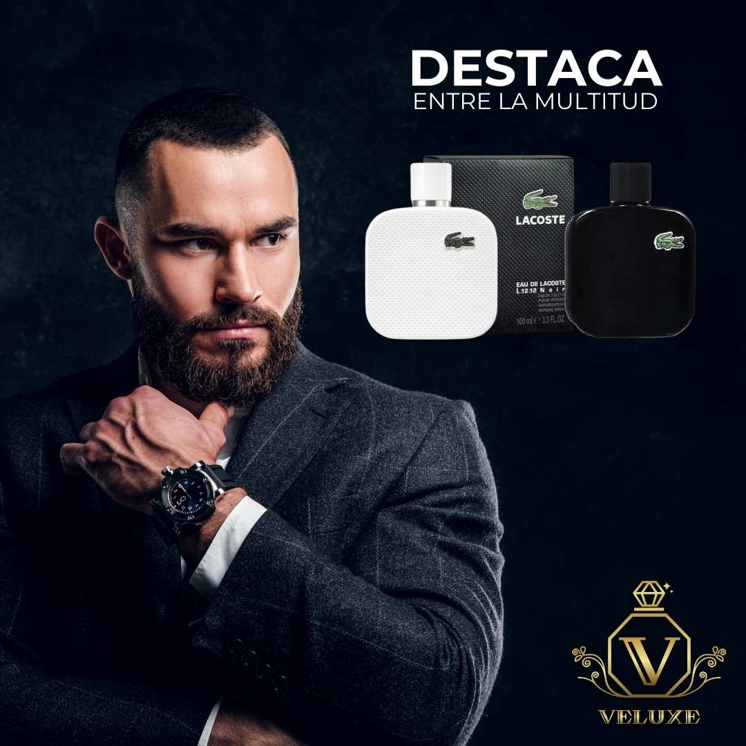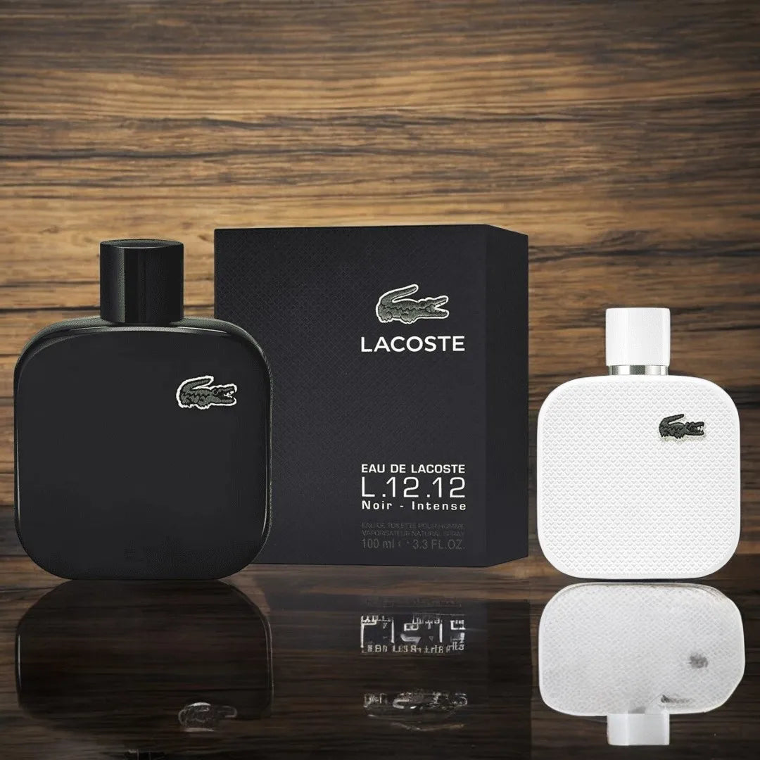 Este combo masculino presenta dos fragancias icónicas de Lacoste: L.12.12 Noir, con notas de sandía, albahaca y chocolate oscuro, que ofrece un aroma intenso y seductor; y L.12.12 Blanc, una esencia fresca y elegante con notas de pomelo, romero y vetiver. Juntas, brindan versatilidad para cualquier ocasión, realzando la presencia y el estilo del hombre moderno.