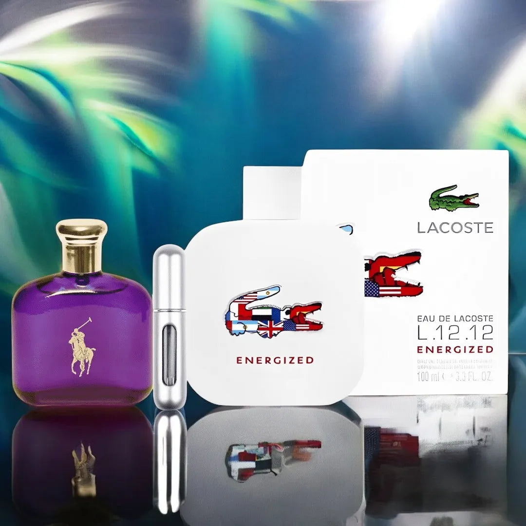 Sumérgete en la vitalidad de Lacoste Energized, que envuelve con su aroma fresco y dinámico. Acompañado por la sofisticación de Polo Ralph Lauren, que ilumina con su esencia elegante y femenina. Este dúo es la combinación perfecta para reflejar tu energía y estilo en cada momento.
