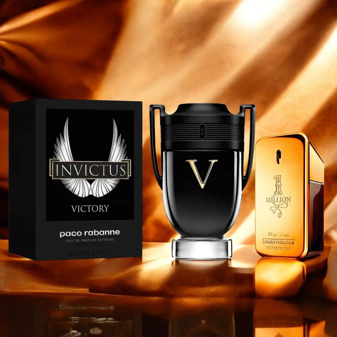 Al aplicarte este dúo, te envuelves en una sensación de éxito y energía. Invictus Victory Extreme aporta una fuerza cálida y seductora, mientras One Million añade un toque de lujo y seguridad. La combinación ideal para quienes buscan dejar una huella de elegancia y poder.