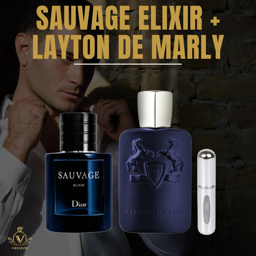 Sauvage Elixir grita poder y masculinidad, mientras Layton aporta un encanto contemporáneo, floral y elegante. ¡Juntos son pura sofisticación en frasco doble!