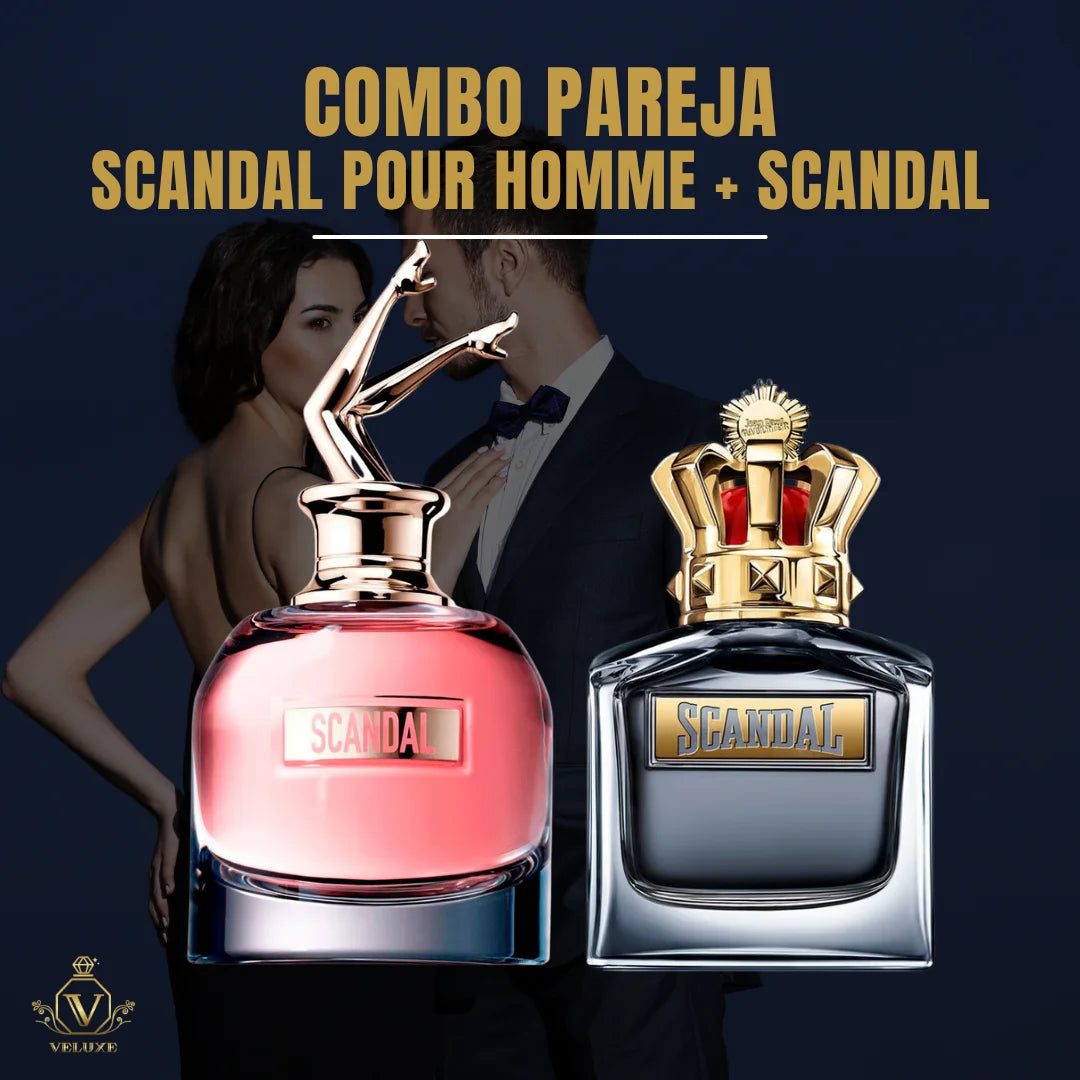 El combo Scandal Pour Homme + Scandal es la combinación perfecta de intensidad y seducción. Él, con notas de haba tonka y caramelo, y ella, con toques de miel y gardenia. Juntos, crean una estela inolvidable que enciende la pasión.