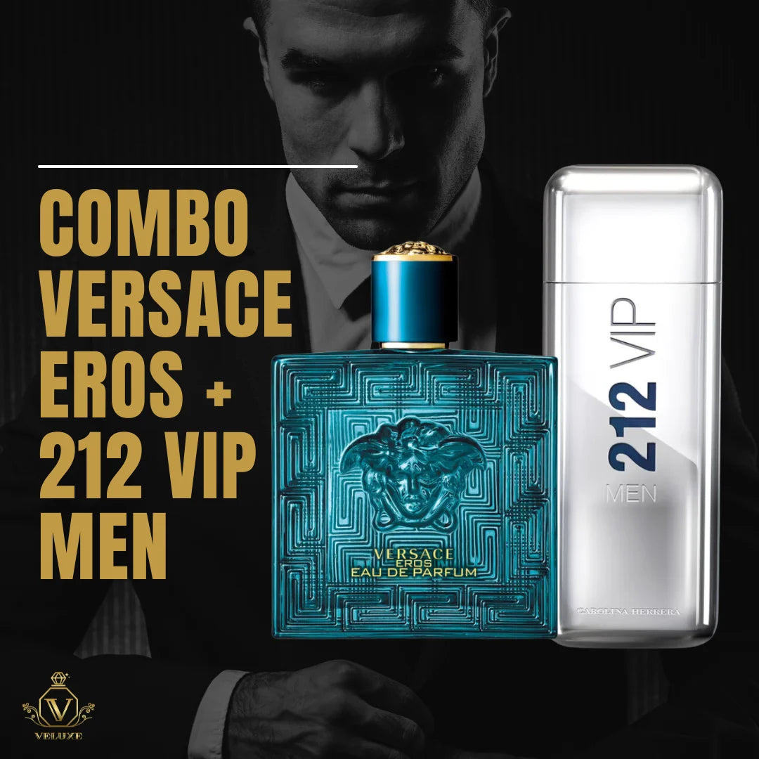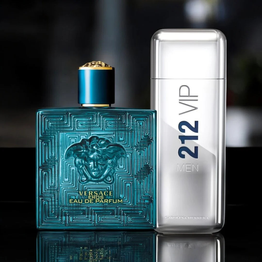La combinación de Versace Eros y 212 VIP Men fusiona la frescura de la menta y el limón con la intensidad de la maracuyá y el jengibre, creando una experiencia olfativa única y sofisticada.