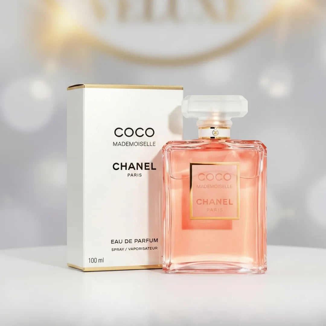 Esta fragancia inspirada en Coco Mademoiselle de Chanel combina notas cítricas de naranja y bergamota con un corazón floral de jazmín y rosa, complementado por un fondo cálido de pachulí, almizcle blanco y vainilla. Es perfecta para la mujer que busca un aroma elegante, fresco y lleno de carácter.