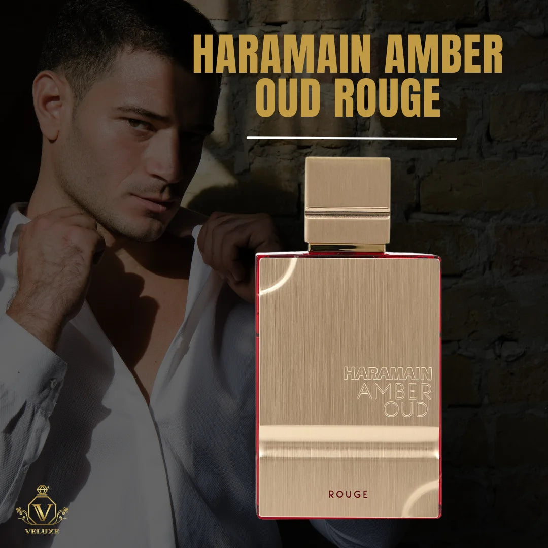 Esta fragancia inspirada en Haramain Amber Oud Rouge combina notas dulces de jazmín y azafrán con un corazón cálido de ámbar y maderas exóticas, complementado por un fondo envolvente de resinas y almizcle. Ideal para quienes buscan un aroma sofisticado, intenso y cautivador.