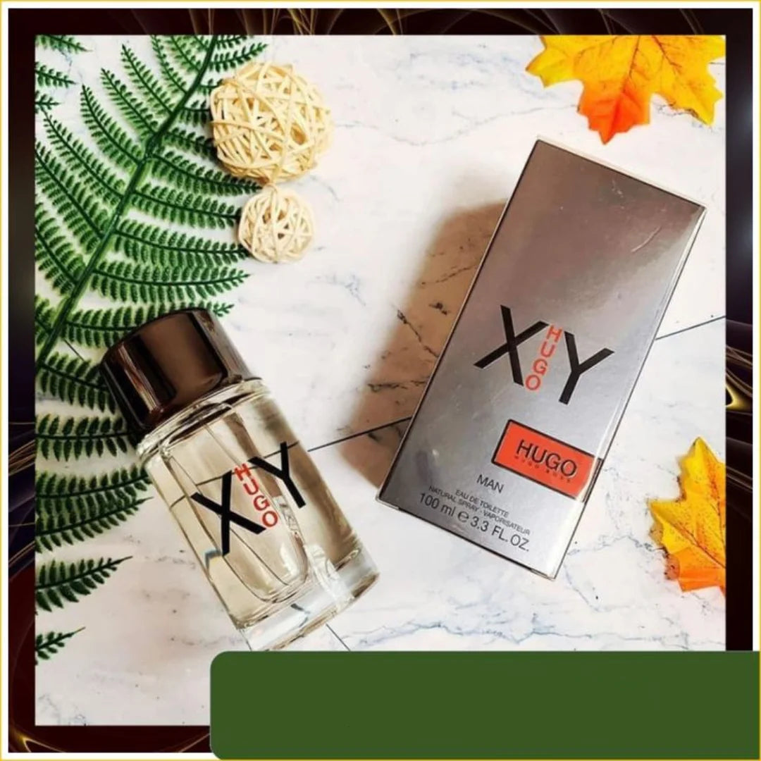 Hugo Boss XY Men, esta fragancia combina la frescura del cedro y la bergamota con la vitalidad de las hojas de peral y la menta, creando un aroma que destaca por su carácter y sofisticación.