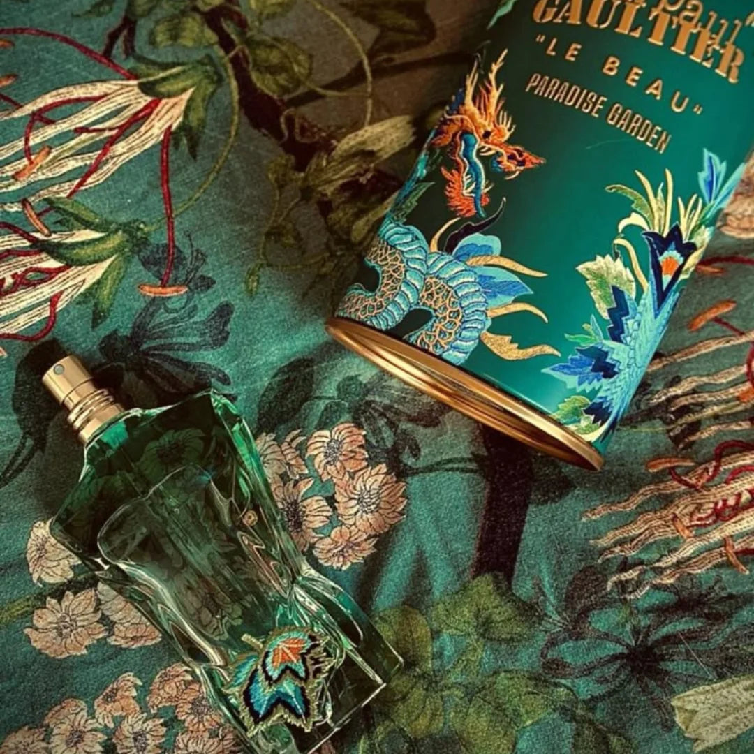 Le Beau Paradise Garden se abre con una combinación revitalizante de notas verdes, acuáticas, menta y jengibre, evocando la brisa fresca de un jardín tropical.