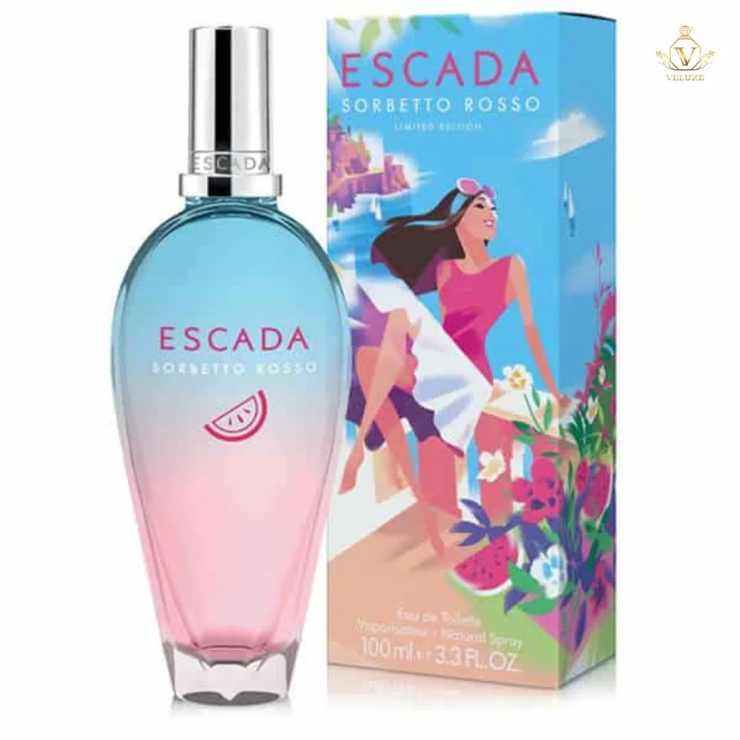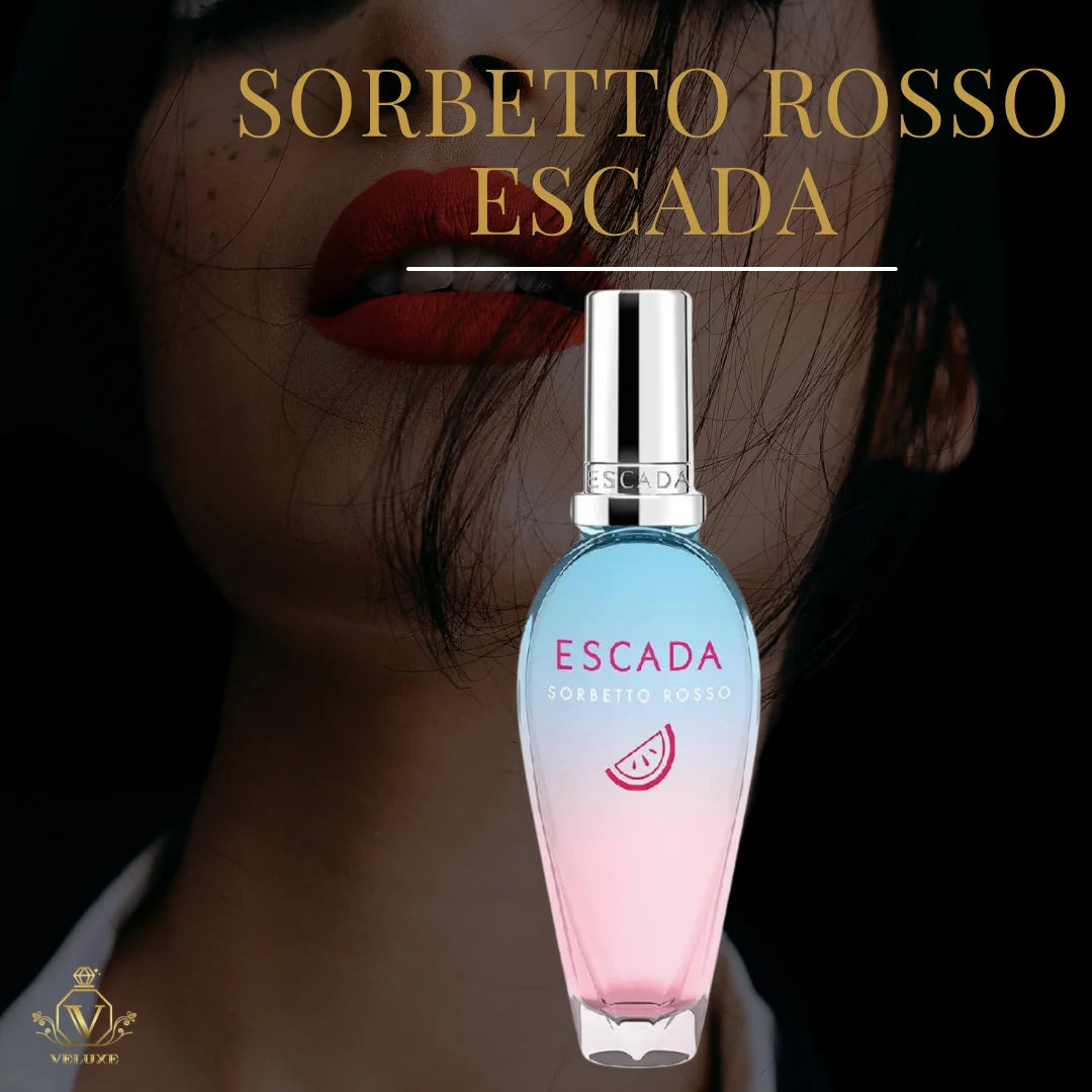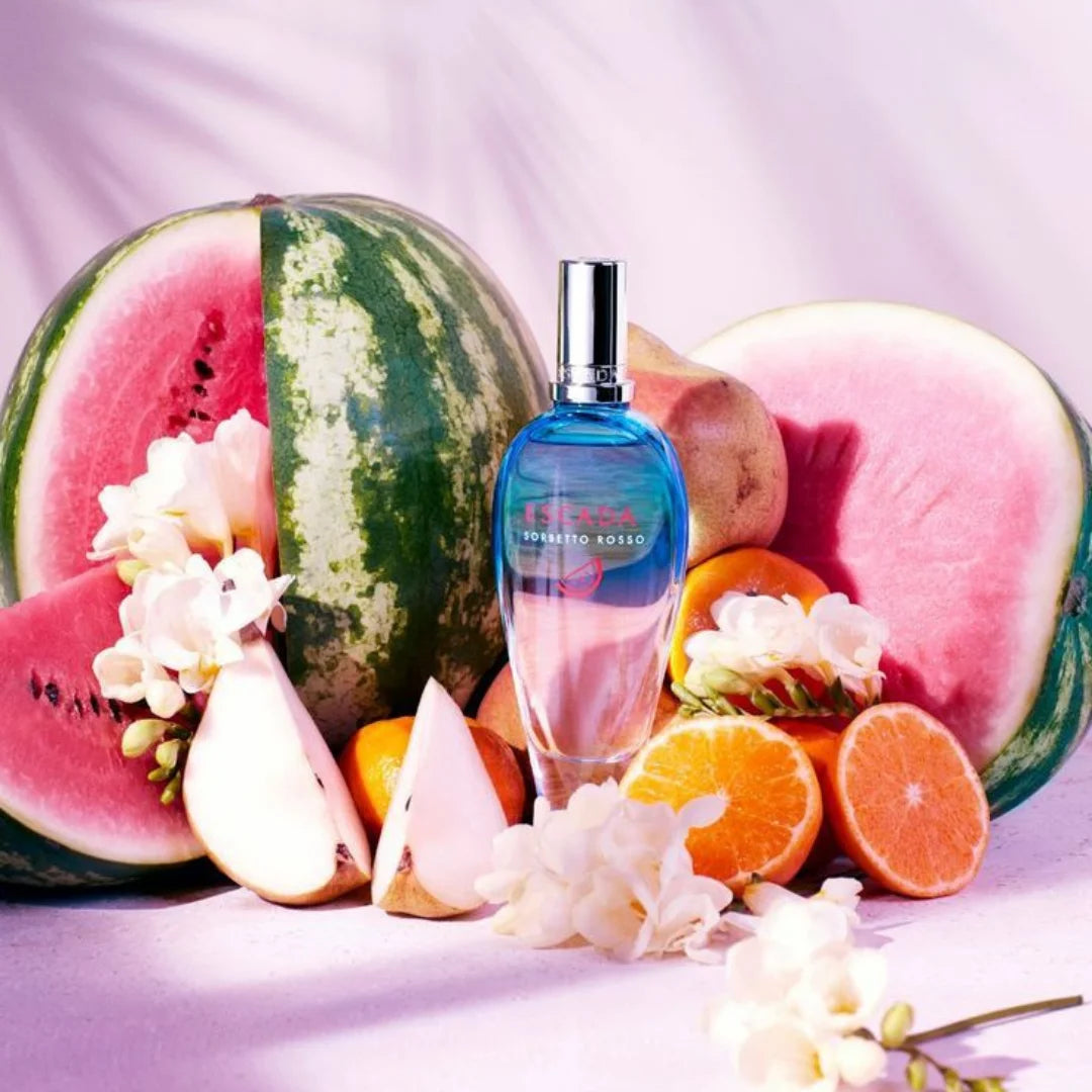 Sorbetto Rosso de Escada es una explosión de sandía fresca y jugosa, combinada con notas frutales y acuáticas que evocan el verano en cada aplicación.