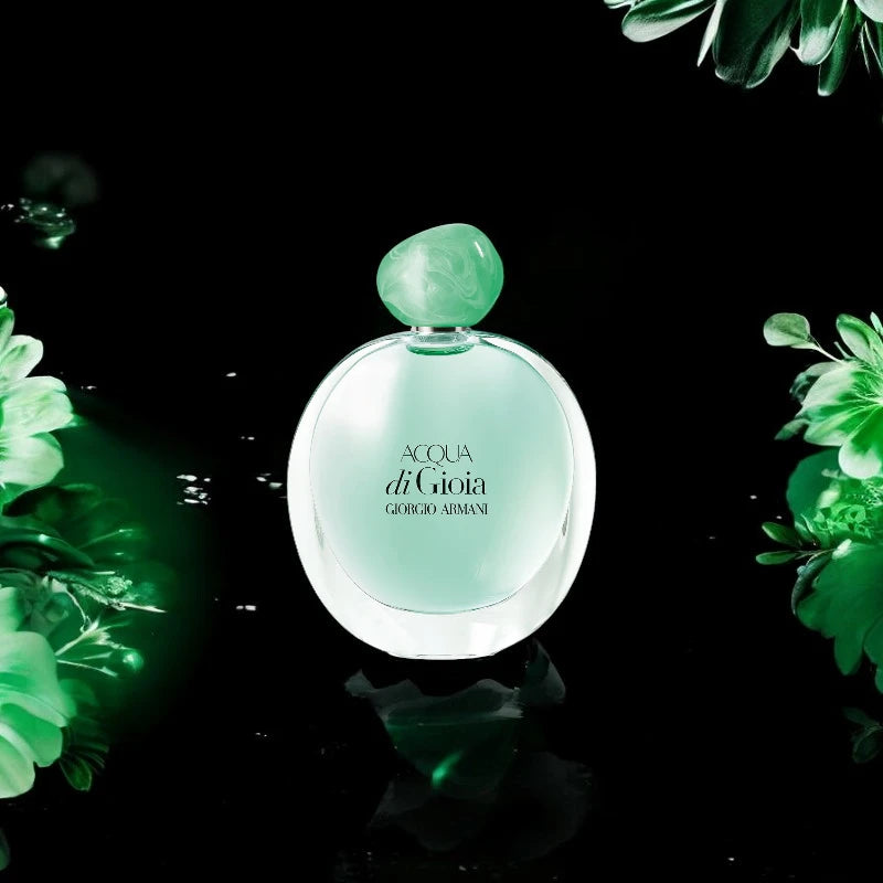 Aplicarte esta fragancia es como sumergirte en un oasis de frescura y serenidad. Acqua di Gioia envuelve con una esencia vibrante y delicada, ideal para la mujer que quiere destacar con naturalidad y elegancia.