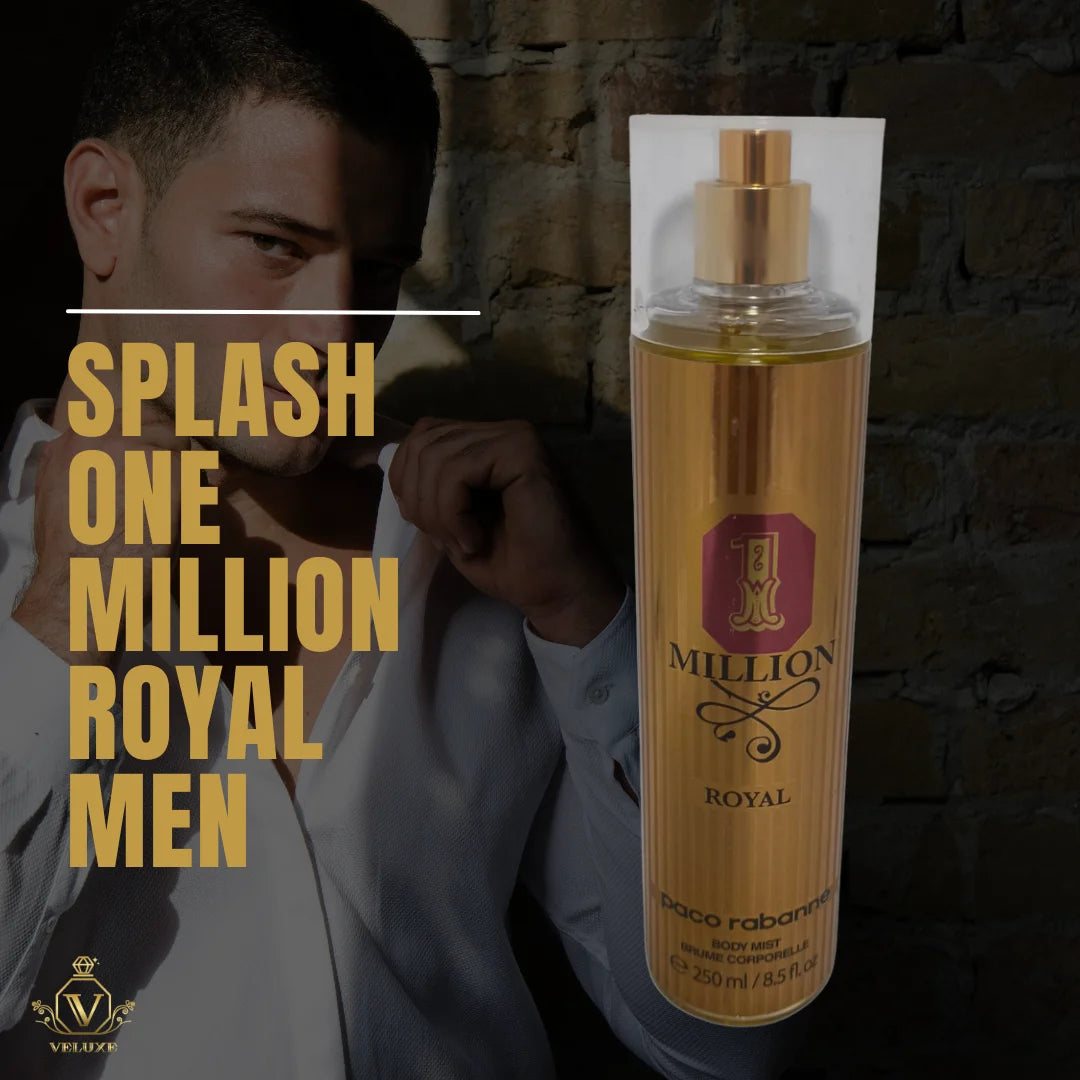 One Million Royal Body Splash revitaliza tu piel con su fragancia vibrante y sofisticada. Ideal para hombres que desean proyectar poder y distinción en cada momento.